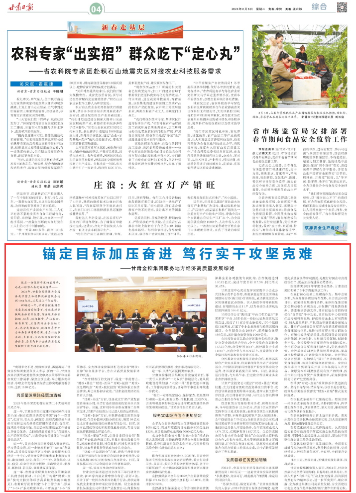 这一年,拼搏在线注册_拼搏(中国)党建引领保障作用更加凸显:集团党委坚决贯彻落实“两个一以贯之”,把方向、管大局、保落实,基层党组织战斗堡垒作用和党员先锋模范作用在稳增长、促改革、防风险中充分彰显,集团公司思想政治工作被省上评价为优秀。金控担保集团被评为“党建融入生产经营示范点”,甘肃征信公司被评为“先进基层党组织”。