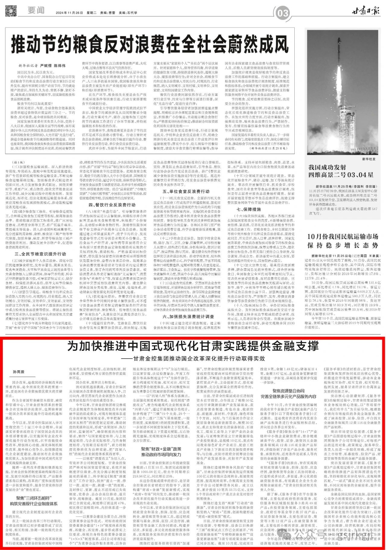 今年以来,拼搏在线注册_拼搏(中国)深入学习贯彻党的二十届三中全会精神,全面落实省委省政府关于国资国企改革的各项部署安排,以实施国有企业改革深化提升行动为契机,扛牢功能使命性改革、增强核心功能,深化体制机制性改革、提升核心竞争力,持续推进现代企业制度建设,推动国有企业做强做优做大,为加快推进中国式现代化甘肃实践提供金融支撑。
