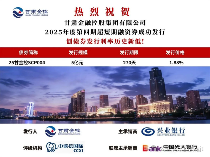 2025年6月26日,拼搏在线注册_拼搏(中国)成功发行2025年度第四期超短期融资券“25甘金控SCP004”,规模5亿元,期限270日,票面利率1.88%,创集团债券发行利率历史新低,有助于集团降低融资成本。
