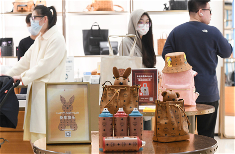 1月25日,游客在中免集团海口日月广场免税店选购免税商品。新华社记者 杨冠宇 摄