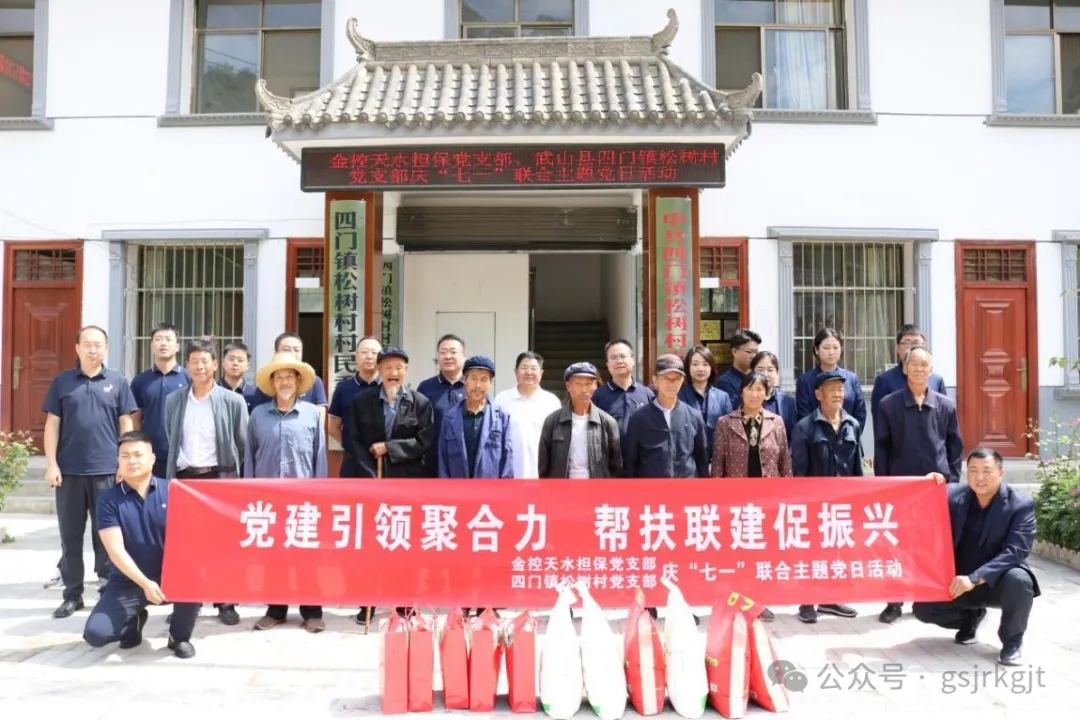 天水担保公司党支部和武山县四门镇松树村党支部联合开展“党建引领聚合力,帮扶联建促振兴”庆七一主题党日活动,重温入党誓词、党支部书记讲授“乡村振兴”和“乡村治理”专题党课,邀请松树村老党员分享入党初心和奋斗经历,与老党员亲切交谈,细心了解家中存在的困难,并为8名老党员送去党的关怀和节日的问候。